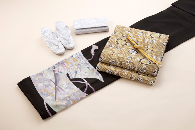 [喪服] 着物 帯 長襦袢 足袋 肌襦袢 裾よけ 腰紐5本 伊達締め2本 衿芯(固め)黒帯板 黒帯枕 黒帯揚げ 黒帯締め タオル(薄手の物) 4~5枚 黒ぞうり 黒バック 風呂敷 |